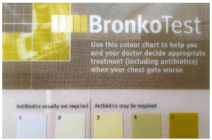 If you notice that the mucus you are spitting up is colour 4 or 5 on the Bronkotest card– you most definitely have some important white blood cells called neutrophils trying to fight something off in your lungs. This colour can also suggest you might need antibiotics!
